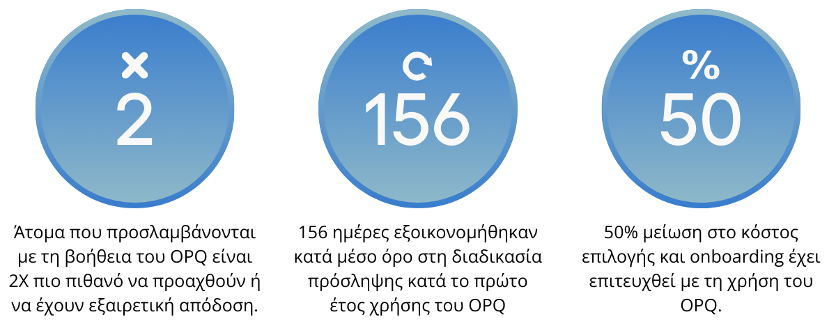 Το OPQ32 αξιολογεί βασικά χαρακτηριστικά επαγγελματικής προσωπικότητας που σχετίζονται άμεσα με την απόδοση και τη συμπεριφορά στην εργασία.
